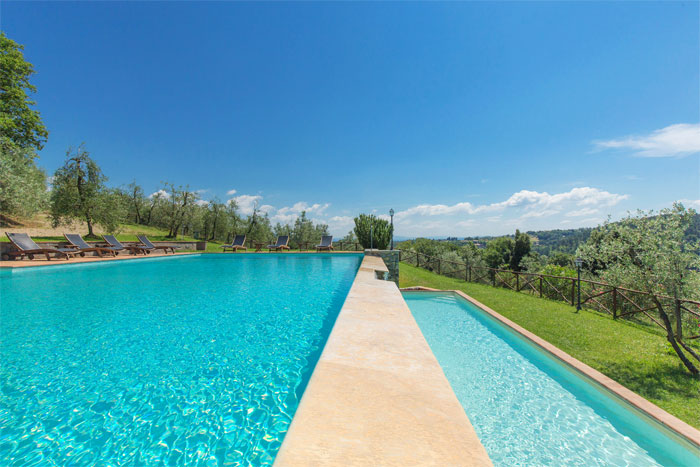 The 2 panoramic pools, surrounded by olive groves, are about 50 mt from the villa and easily accessed via a large downhill path.