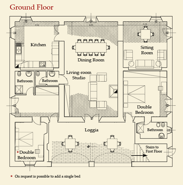 On request in one of the ground floor bedrooms is possible to add a single bed