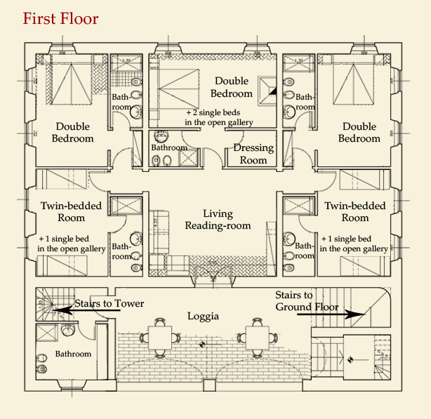 2 twin-bedded rooms (can be turned to double bed) each with an open gallery with single bed (suitable for a teenager); each with its own en-suite bathroom with shower
