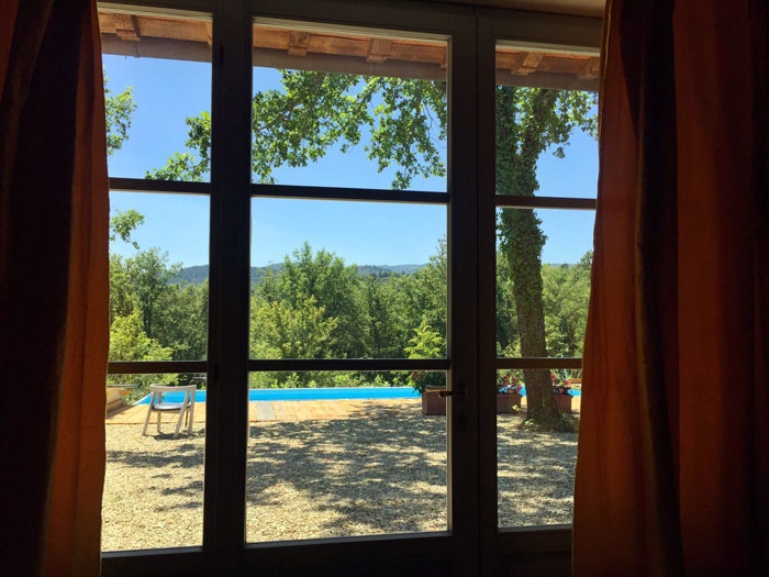 A nice walk starting from the villa and up in the hills gave us this amazing view of Montegonzi (on the left of the photo), Fontebussi Tuscan Resort (in the center of the photo), the Arno valley and Pratomagno mountain. |