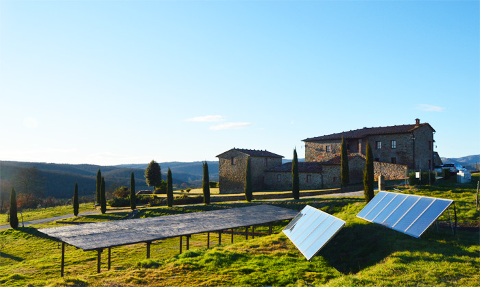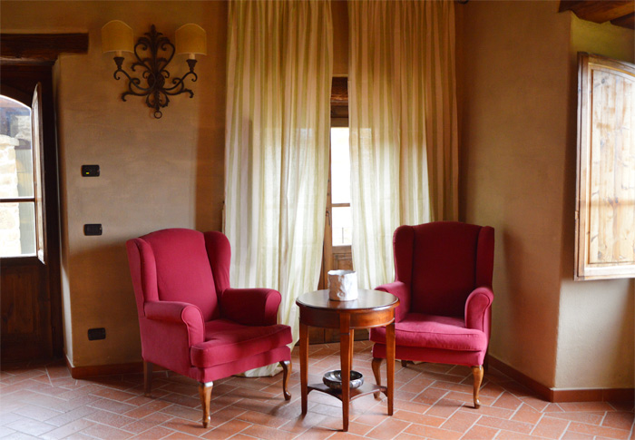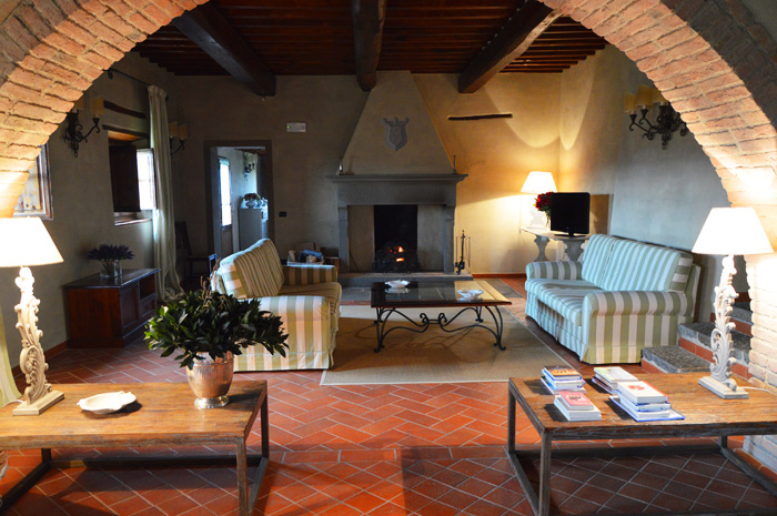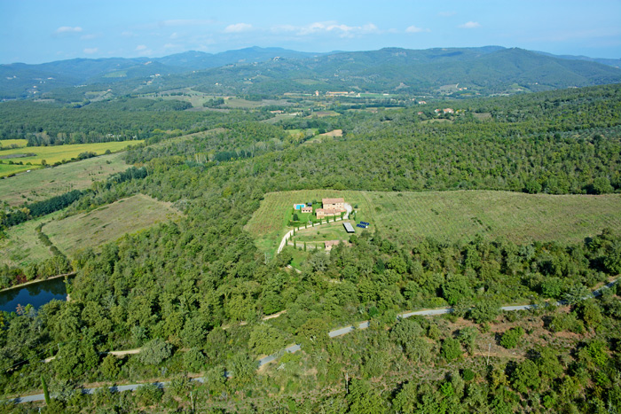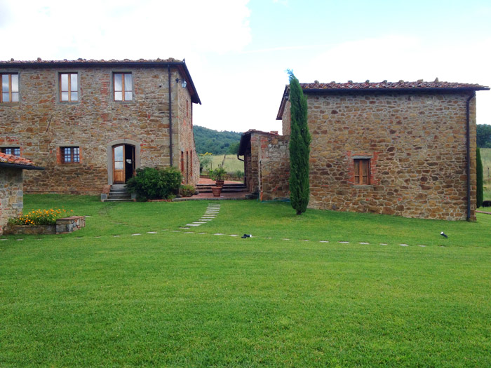The Villa, built in stone according to ancient Tuscan tradition, stands out above the surrounding valley on a spot from which one can admire long rows of vineyards and olive groves, as well as many other species of trees and shrubs inhabiting the area.